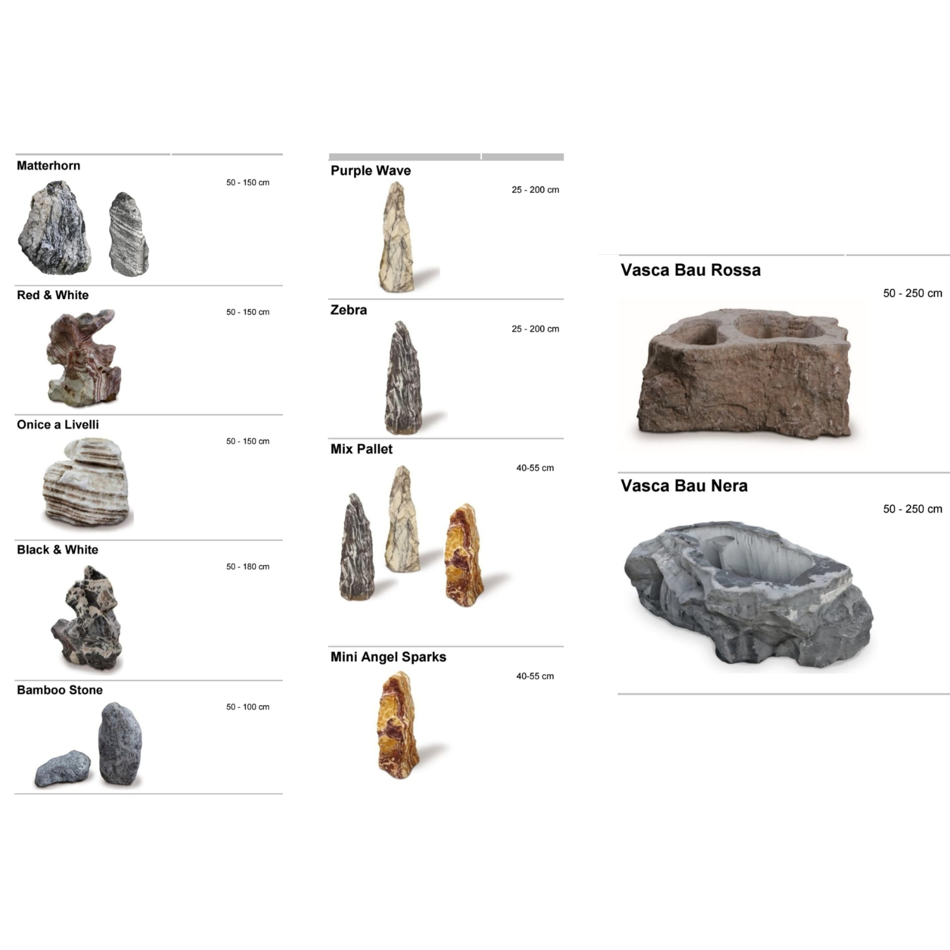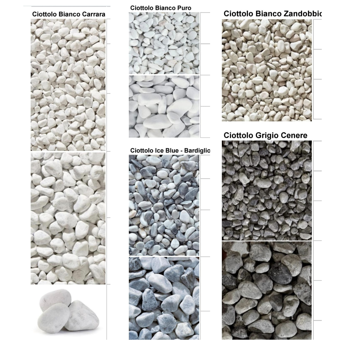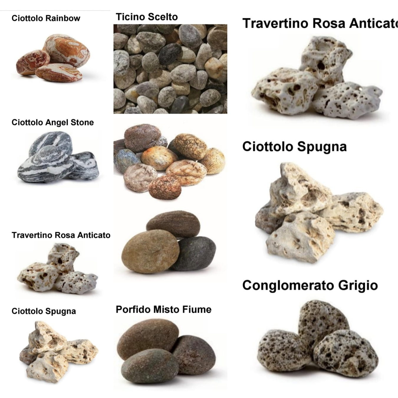 Sve vrste kamenja mogu se međusobno kombinovati, prilagoditi željenoj granulaciji i uskladiti sa bojom veziva, kao i sa namenom prostora.