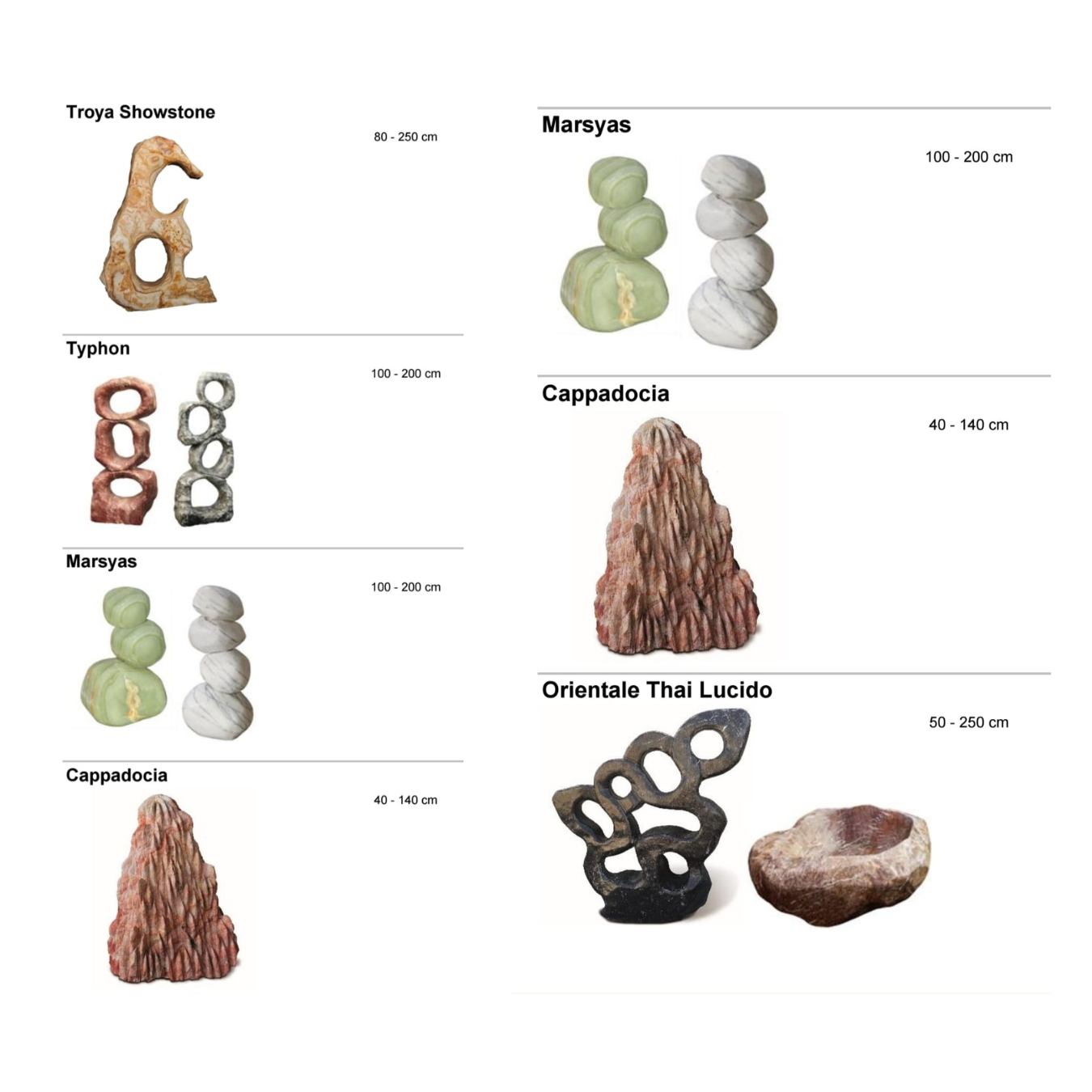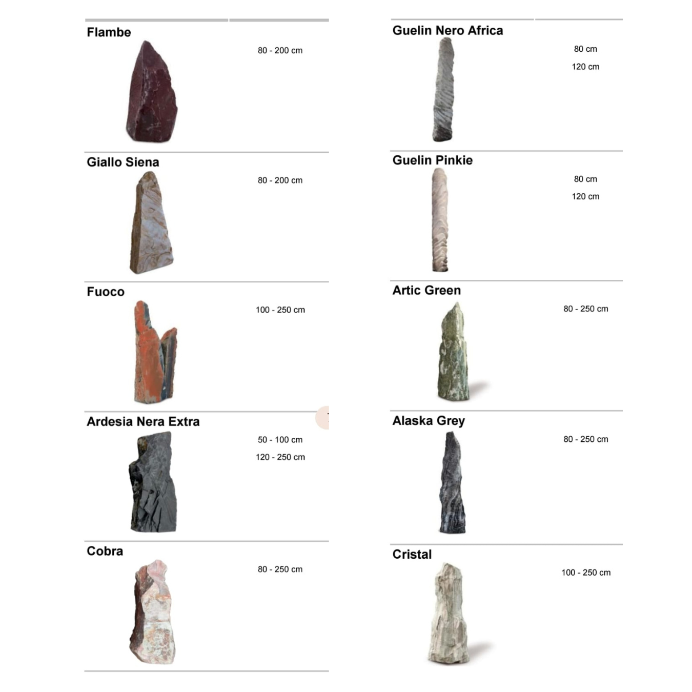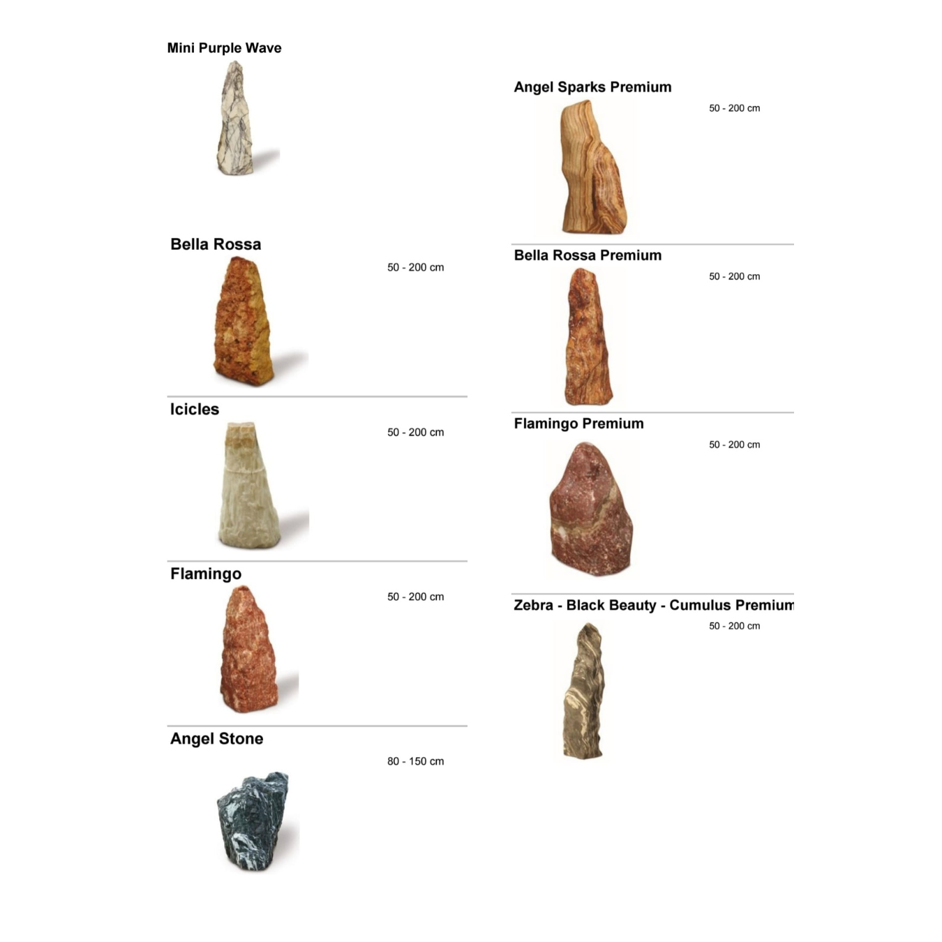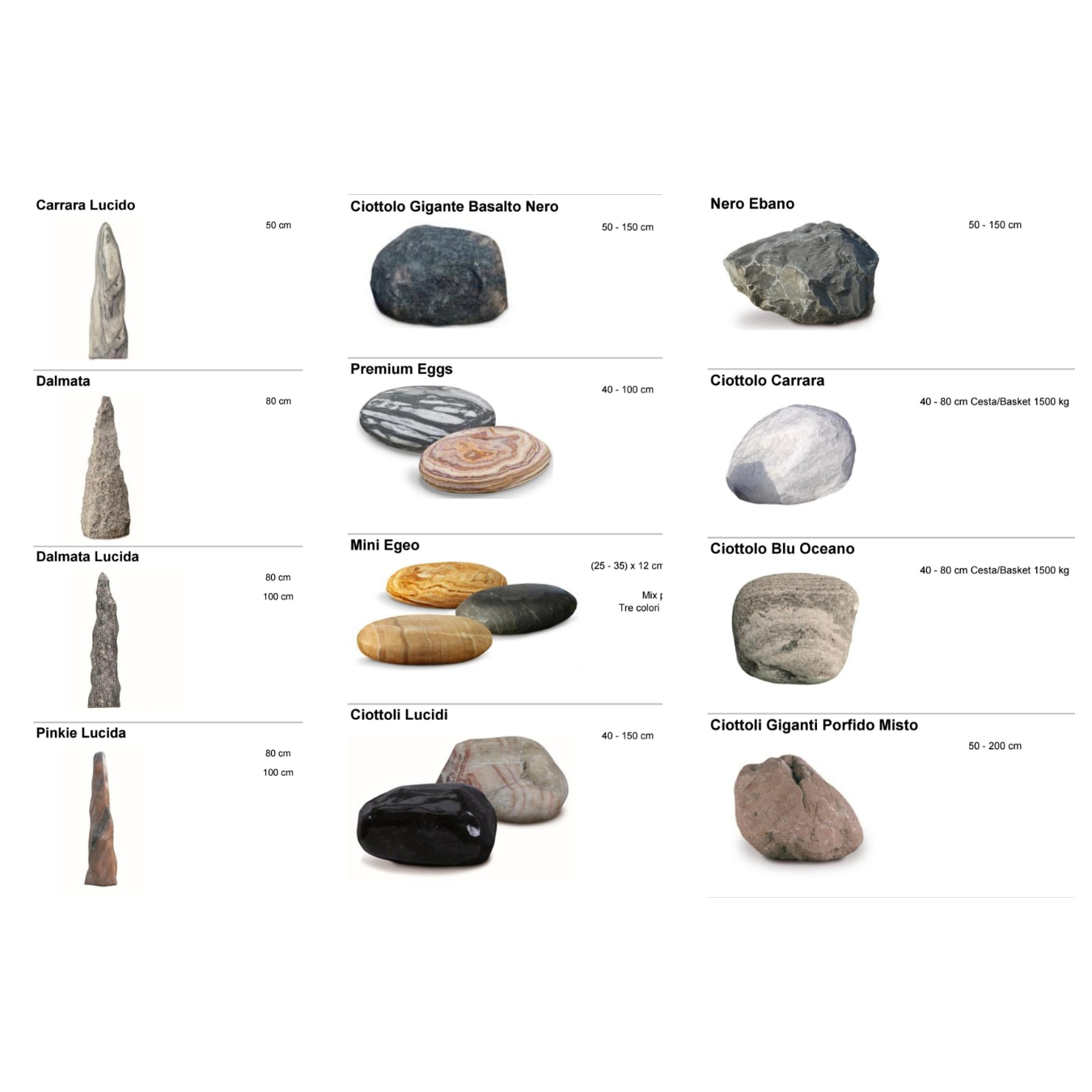 Sve vrste kamenja mogu se međusobno kombinovati, prilagoditi željenoj granulaciji i uskladiti sa bojom veziva, kao i sa namenom prostora.